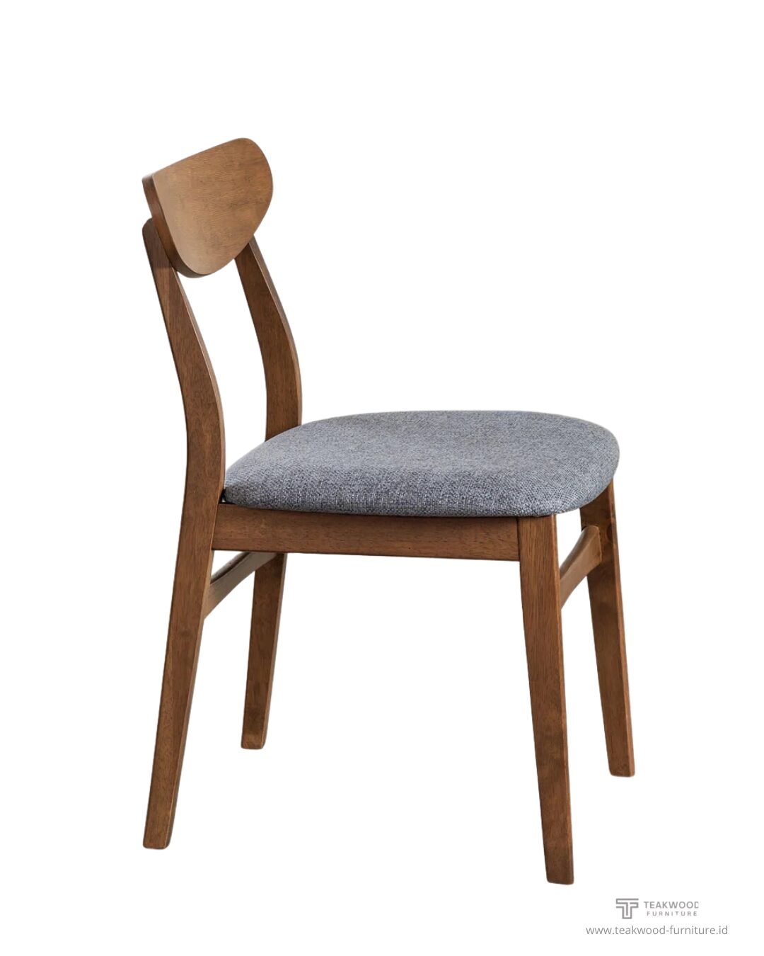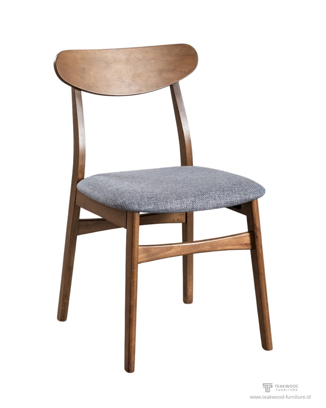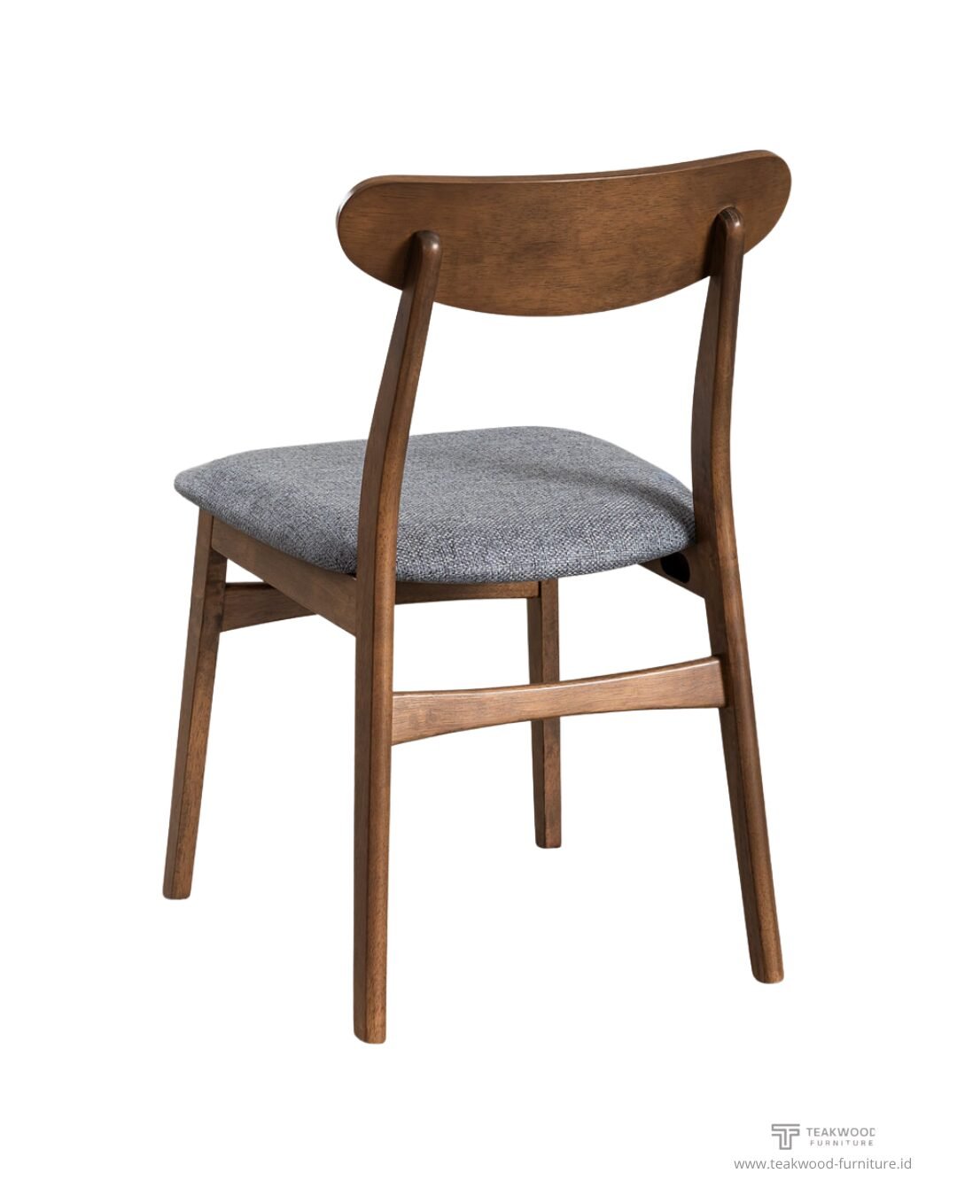 - Dudukan (Seat): Dilengkapi dengan bantalan dudukan (seat cushion) yang empuk. Bantalan dilapisi dengan kain bertekstur atau fabric berwarna abu-abu muda kebiruan atau heather gray, yang kontras indah dengan bingkai kayu yang gelap.